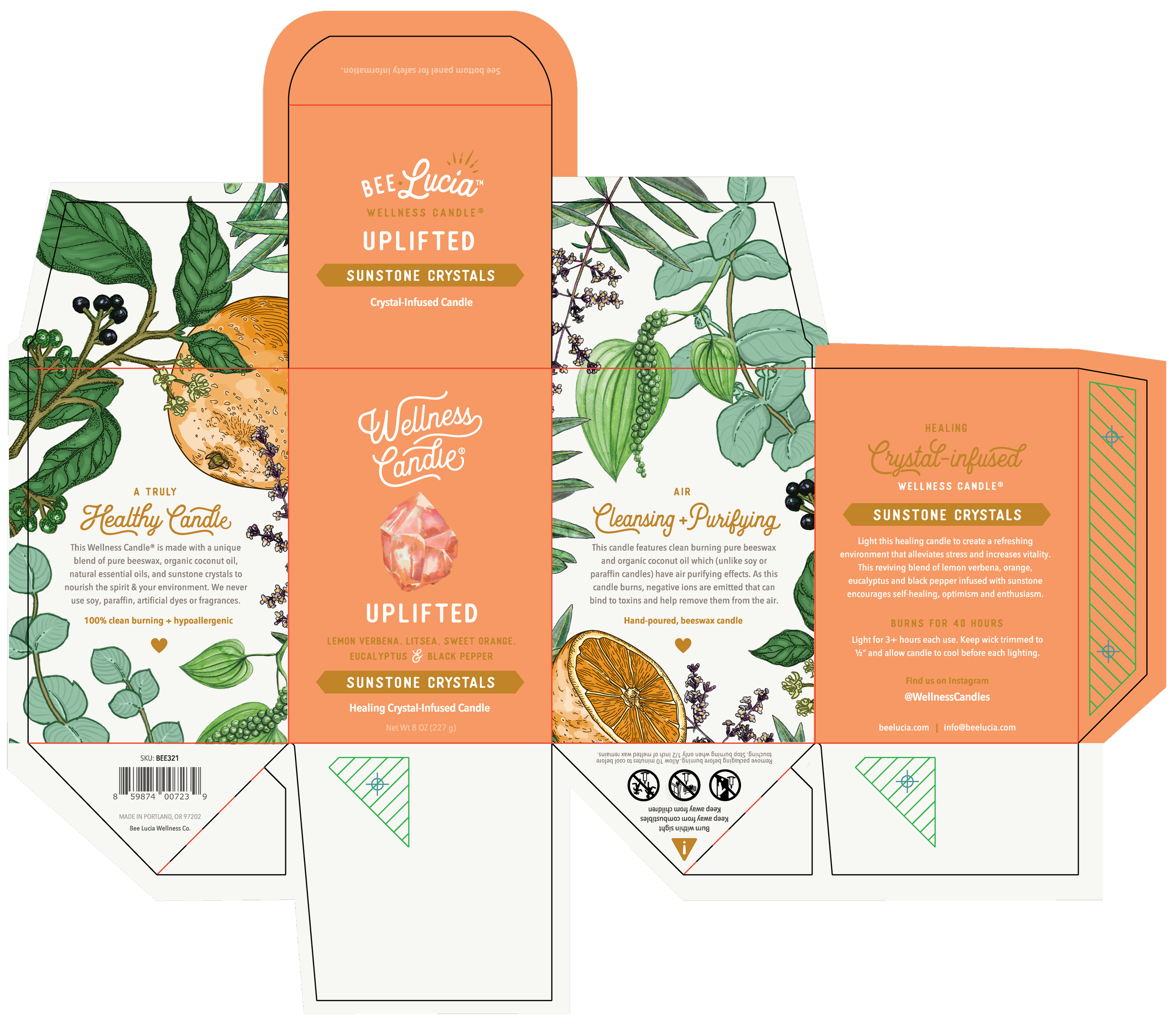 Bee Lucia makes the crystal-infused Wellness Candle®. Each candle is made using a healthy blend of pure beeswax, organic coconut oil, therapeutic grade pure essential oils and natural crystals. Clean burning and hypoallergenic.